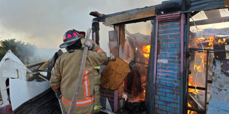 Elementos del H. Cuerpo de Bomberos atendieron un incendio registrado en un cuarto de madera ubicado sobre la carretera vía corta a Chihuahua, frente a un yonque, encontrando un cuarto de madera de aproximadamente 5×3 metros en fase de libre desarrollo.