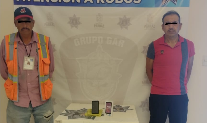 Agentes de la Dirección General de Seguridad Pública Municipal adscritos al Grupo Especial de Atención a Robos detuvieron a dos hombres por sustraer presuntamente un teléfono celular en la colonia FOVISSSTE 1 de mayo, mismo que reconocieron haber empeñado.