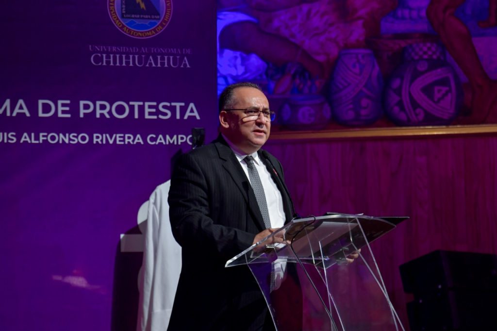 Luis Rivera reconoció la visión política del Poder Ejecutivo, encabezado por Maru Campos y afirmó: “Nos une el mismo ideal que es el bienestar de la comunidad chihuahuense. Trabajando en equipo lograremos la universidad que merecemos ya que el compromiso es con las y los estudiantes”.