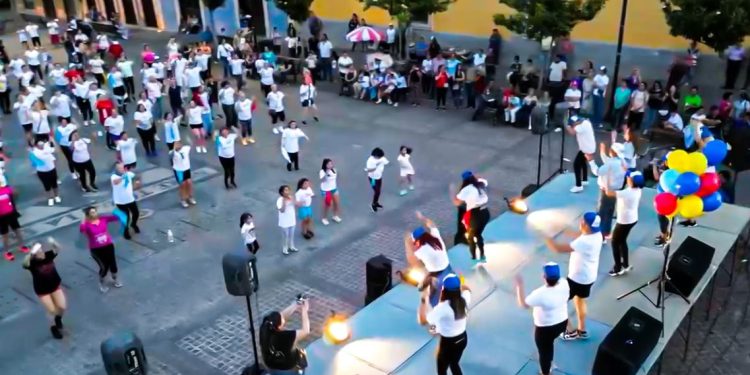 Más 500 mujeres acudieron en apoyo de Chava Calderón, al “ChavaTon”, un encuentro de zumba en la Plaza de la Identidad, organizado por el candidato a la alcaldía de Parral por el PAN, PRI y PRD.