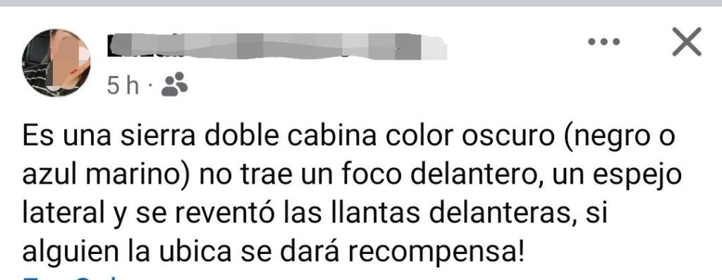 Se trata, según usuarios de redes sociales, de una pick up GMC Sierra de color oscuro, que bien podría ser azul marino o negra, doble cabina y modelo aproximado entre 2007 y 2013.