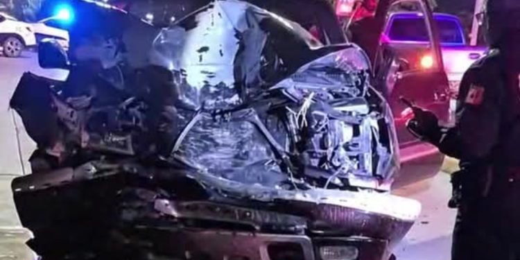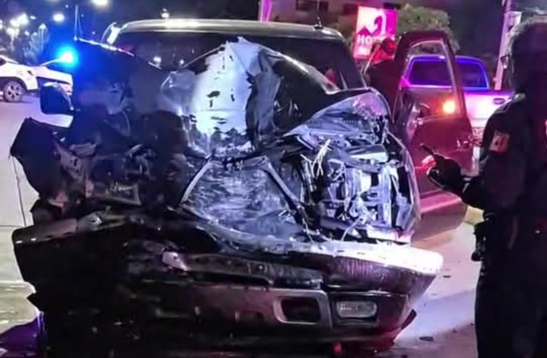 El incidente ocurrió a las 22:14 horas, cuando una camioneta GMC Sierra de color guinda realizó una maniobra de vuelta en U para descender por la avenida, momento en el que fue impactada violentamente por la parte trasera derecha por una Chevrolet Silverado negra que transitaba a alta velocidad en dirección libre.