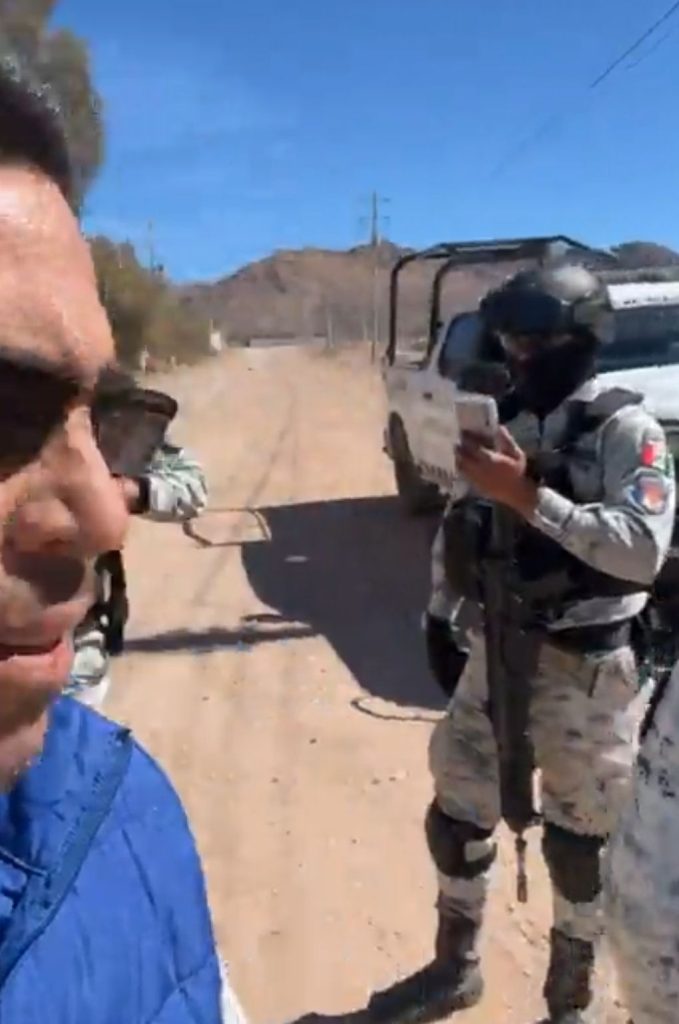En el video se observan unos cinco o seis militares, y a uno de ellos, Valles acusa de haberlo amenazado con una pistola, mismo que al principio saluda a la cámara y segundos después se tapa el rostro.
