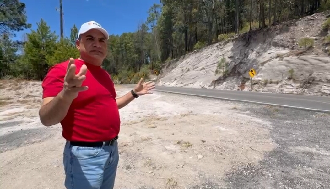 Chávez Velázquez hizo una parada en la carretera que comunica Guadalupe y Calvo con Badiraguato y la cual fue recientemente inaugurada por el presidente López Obrador.