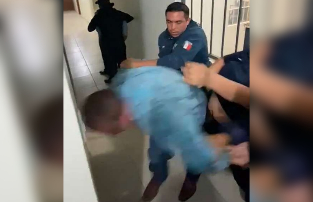 Entre tres uniformados que tienen sometido a un hombre identificado como Javier Trejo Flores, del cual se desconocen los motivos de su detención, pero en el video se aprecia que, a pesar de tenerlo sometido, uno de los agentes lo obliga a soltarse de una reja a la que se sujetaba para impedir que lo movieran a otro sitio y, torciéndole el brazo, hace que el señor Trejo Flores se estrelle de cabeza contra la pared.