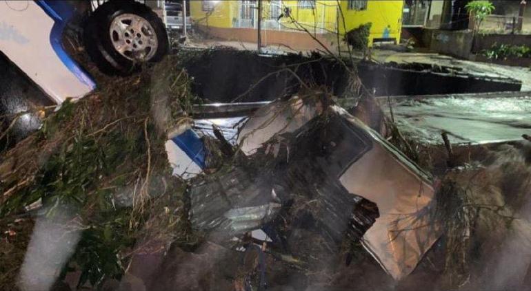 La fuerza alcanzada por el agua fue tal que inundó las calles e incluso arrastró varios carros que estaban estacionados en la calle.