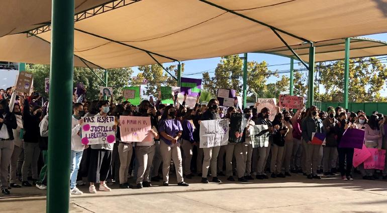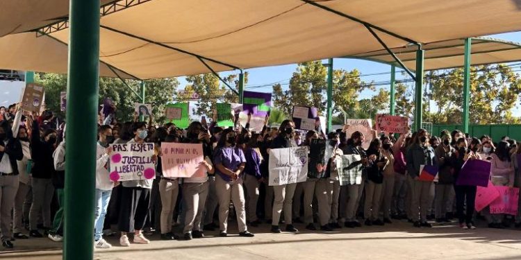 Alumnos del Colegio de Bachilleres del Plantel tres en la ciudad de Chihuahua, realizaron una manifestación en la institución tras el caso de presunto abuso que se dio en el interior de las instalaciones contra una adolescente de 15 años.