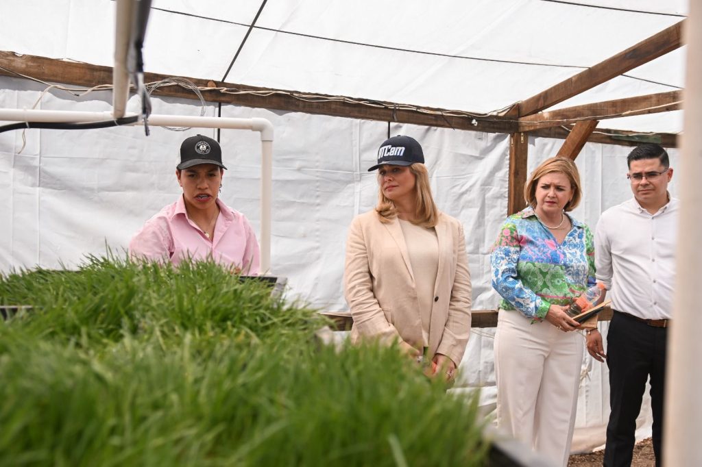 En el marco de la gira de trabajo que efectúa por la región sur de la entidad, la Gobernadora del Estado interactuó con los estudiantes de la Universidad Tecnológica de Camargo (UTCam) Unidad Jiménez, durante el desarrollo de la Feria de proyectos finales, de la carrera de Agricultura sustentable.