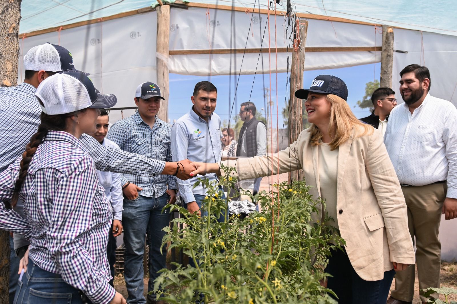 En el marco de la gira de trabajo que efectúa por la región sur de la entidad, la Gobernadora del Estado interactuó con los estudiantes de la Universidad Tecnológica de Camargo (UTCam) Unidad Jiménez, durante el desarrollo de la Feria de proyectos finales, de la carrera de Agricultura sustentable.