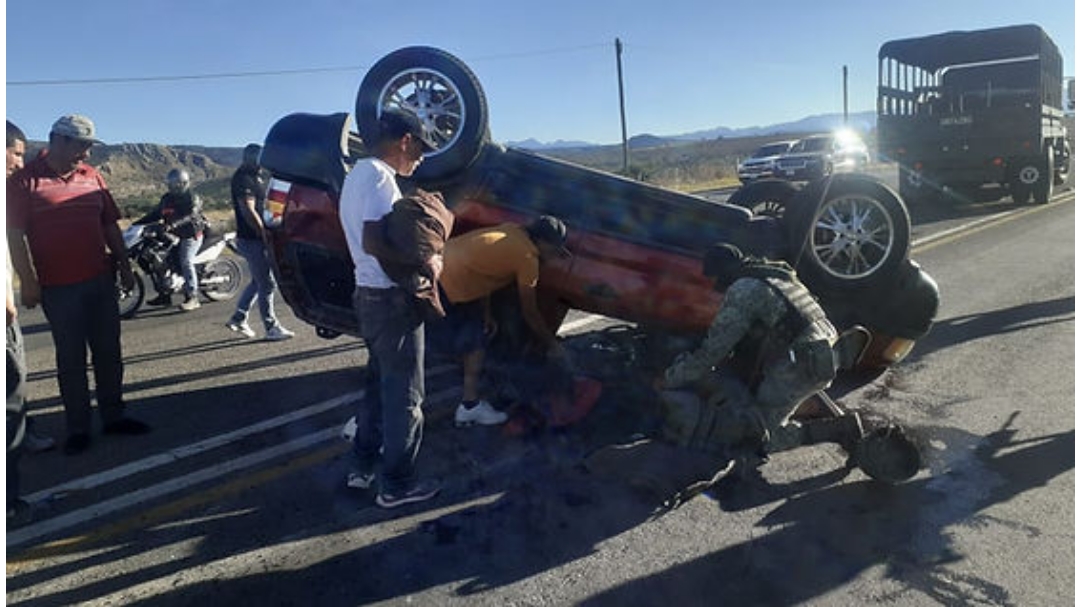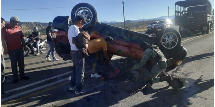 A la altura de la colonia Federico Ferro Gay, una Ford Escape color rojo, conducida por Flor Andrea C., quedo volteada tras chocar con otro automotor, dejando a la conductora de la camioneta con múltiples golpes en diferentes partes de cuerpo, incluyendo una herida a la altura de la espalda y otra en la pierna derecha.