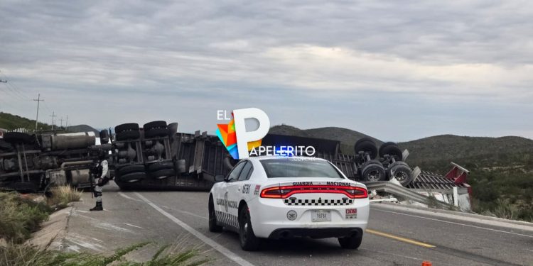 Durante la madrugada de este viernes, se registró la volcadura de un tráiler en la carretera Vía Corta a Chihuahua, a la altura del kilómetro 138, en el municipio de Valle de Zaragoza.