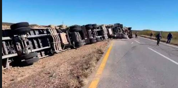 VOLCADURA de tráiler provoca cierre de la carretera Parral – Jiménez