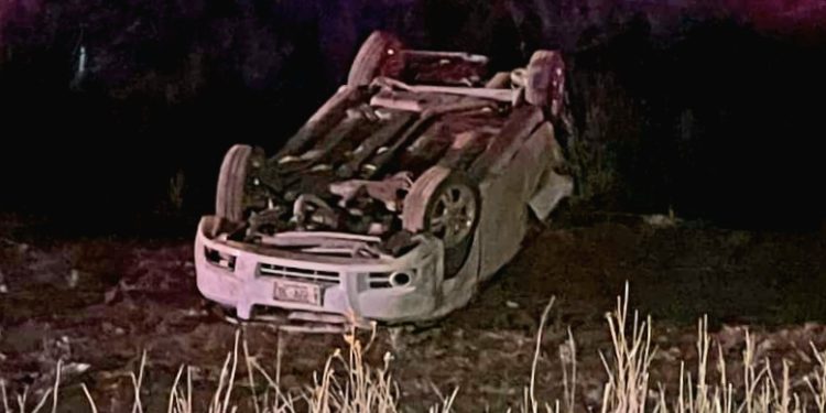 Apenas pasadas las 11 de la noche, un automóvil volcó en la carretera Parral-Matamoros dejando como saldo tres jóvenes heridos y dos más muertos.