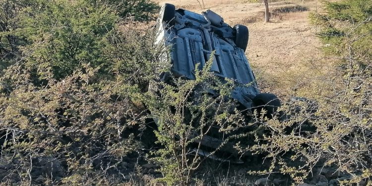 Dos trabajadores de la empresa Coanzamex terminaron hospitalizados este viernes luego de que el vehículo en el que viajaban volcó sobre la carretera Parral–Jiménez, a unos metros de las instalaciones de la Fiscalía.