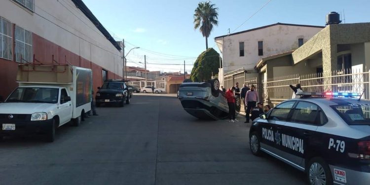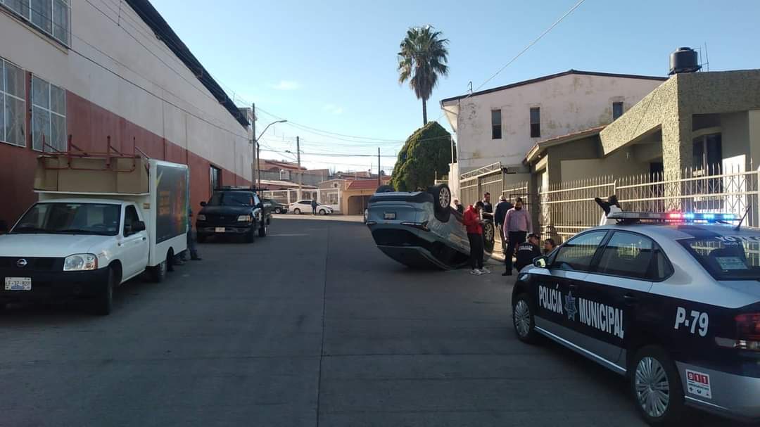 Estos movimientos ocasionaron que se volcara quedando con las 4 llantas hacia arriba.
