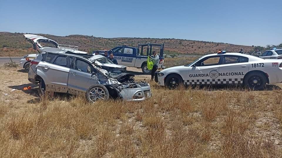 VUELCA camioneta en carretera a Jiménez; 2 adultos y 3 menores HERIDOS
