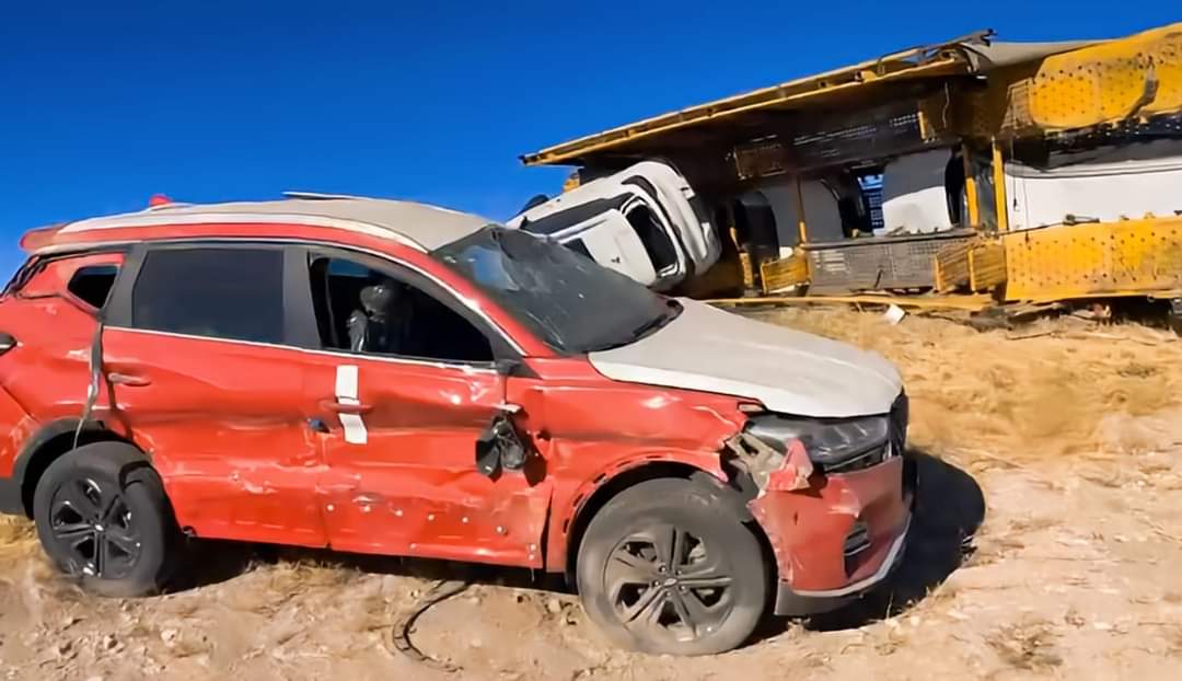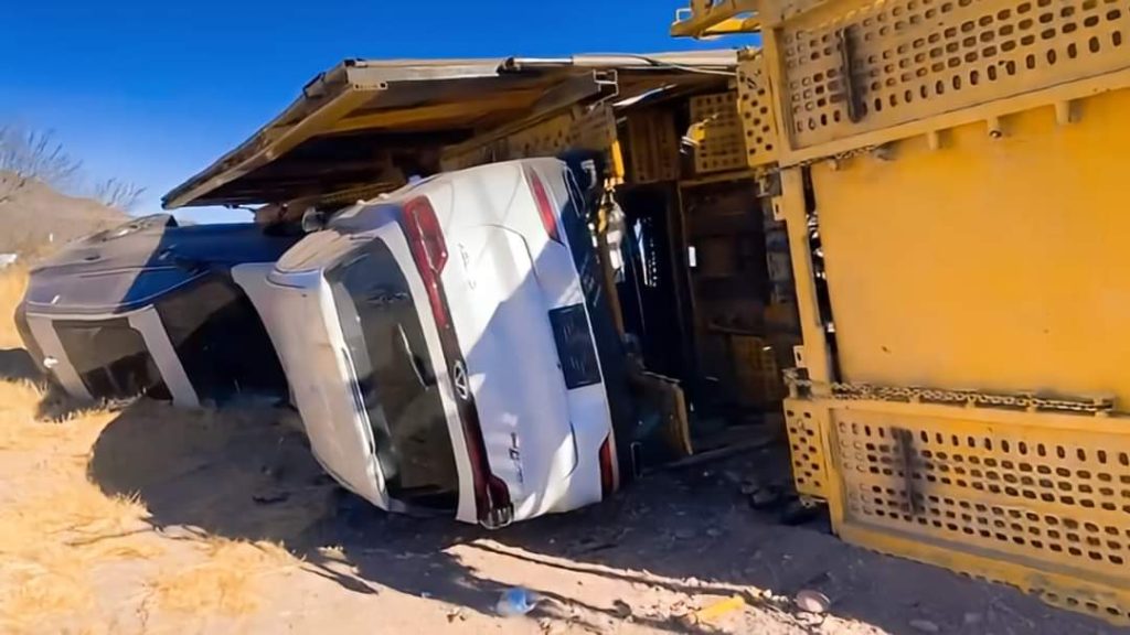 El chofer resultó ileso, pero las pérdidas de los automóviles nuevos son millonarias debido a los fuertes daños ocasionados por la volcadura en al menos 7 vehículos último modelo que sufrieron pérdidas totales.