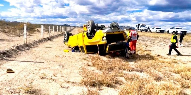La camioneta, con placas del estado de Chihuahua, resultó con perdidas totales y, de acuerdo a la estimación de las autoridades, la causa de la volcadura pudo ser el exceso de velocidad.