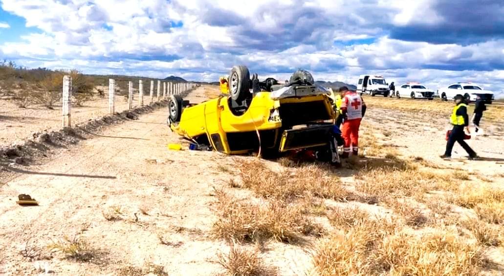 La camioneta, con placas del estado de Chihuahua, resultó con perdidas totales y, de acuerdo a la estimación de las autoridades, la causa de la volcadura pudo ser el exceso de velocidad.