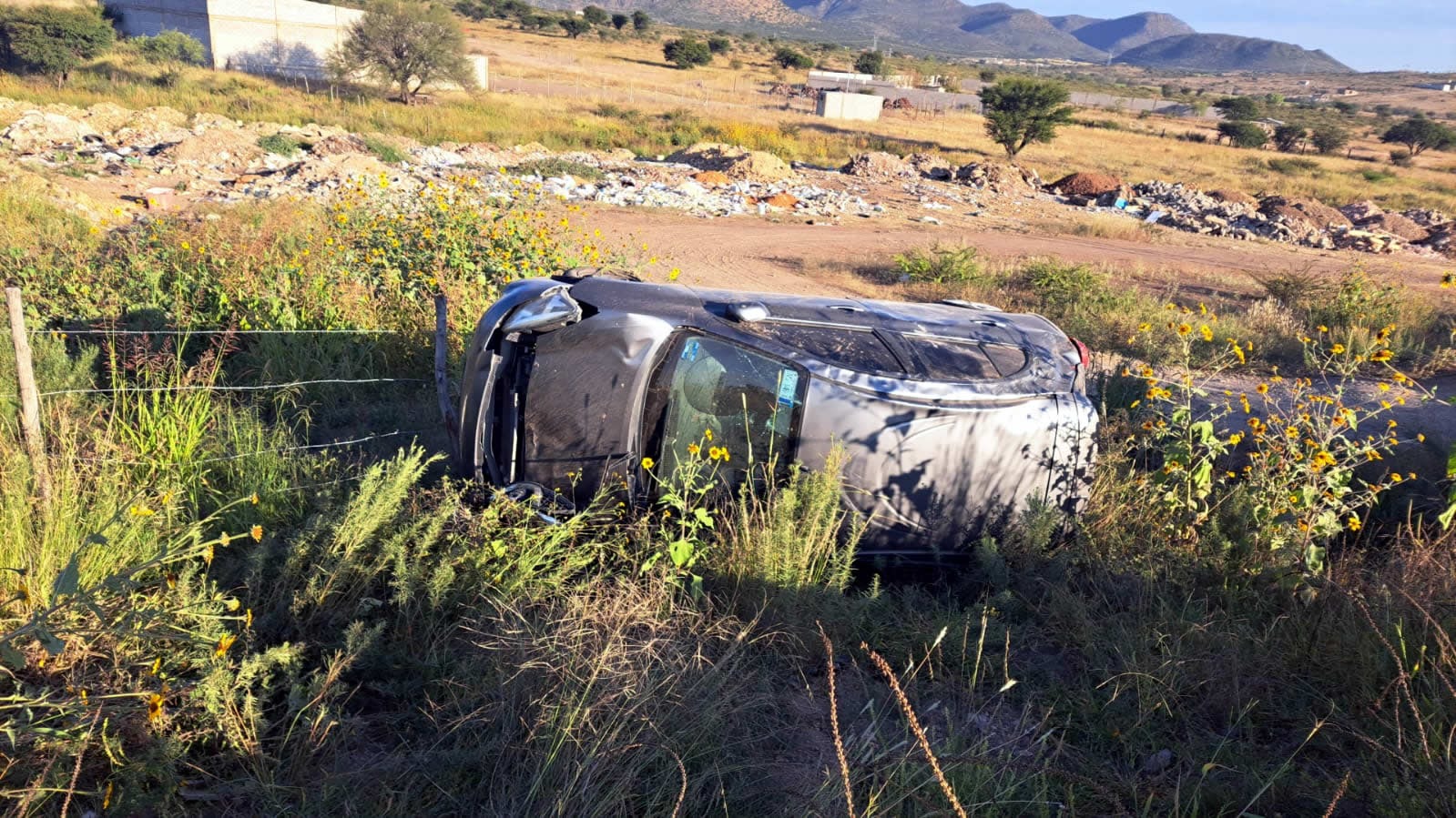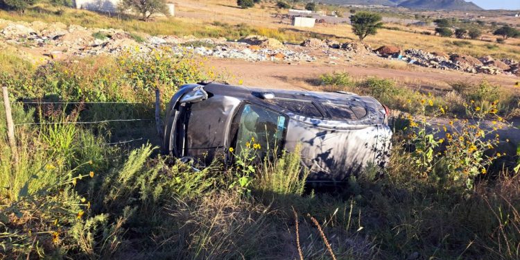 Mientras circulaba sobre la carretera que conduce de Parral a Santa Bárbara a la altura de la colonia Federico Ferro, la conductora de un auto Nissan March perdió el control del volante, salió de la banda de rodamiento y terminó volcando.