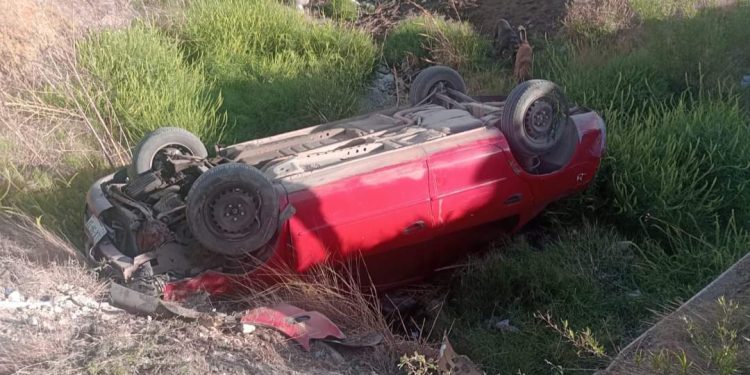 El conductor de un Dodge Neon color rojo que circulaba sobre la carretera a Santa Bárbara, perdió el control del volante y terminó volcándose a la altura del Rastro Municipal de aquella población.