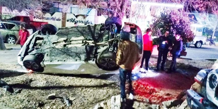 Durante la madrugada, el conductor de un vehículo terminó volcado sobre la parte alta de la Avenida Independencia, a la altura del acceso a la colonia Las Fuentes segunda etapa.