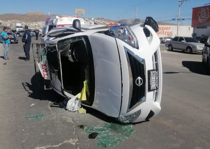 A las 3 de la tarde de este lunes, un taxista sufrió una volcaudra después de haber chocado contra otro automóvil en la avenida Niños Héroes.