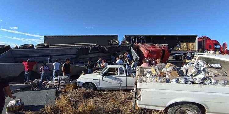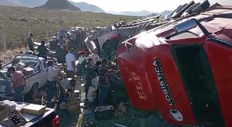 Los «pepenadores» entorpecieron la labor de trabajadores enviados para recuperar la carga, pues no permitian que recogieran algo del producto y transportarlo a otros dos tráileres que habían acudido al lugar.