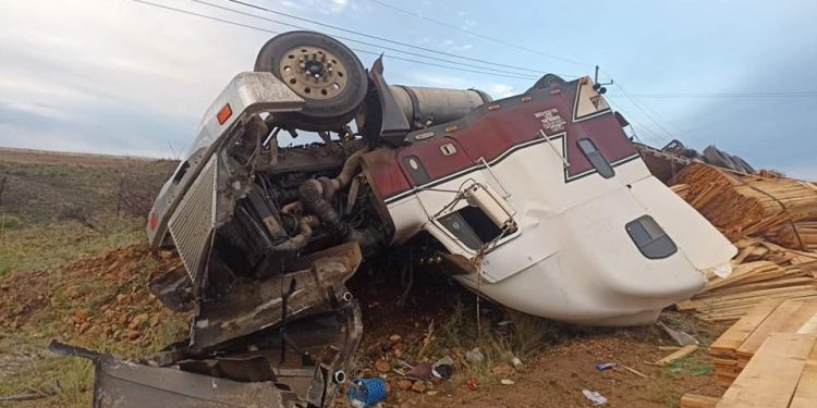 Un tractocamión cargado con toneladas de madera, sufrió un accidente sobre la carretera que conduce de Parral a Jiménez, específicamente a la altura del kilómetro 5.