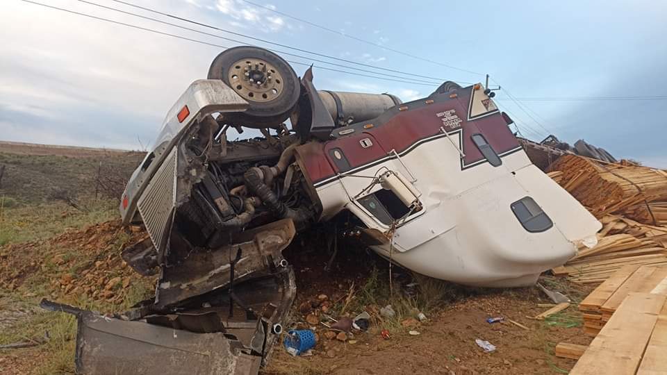 Un tractocamión cargado con toneladas de madera, sufrió un accidente sobre la carretera que conduce de Parral a Jiménez, específicamente a la altura del kilómetro 5.