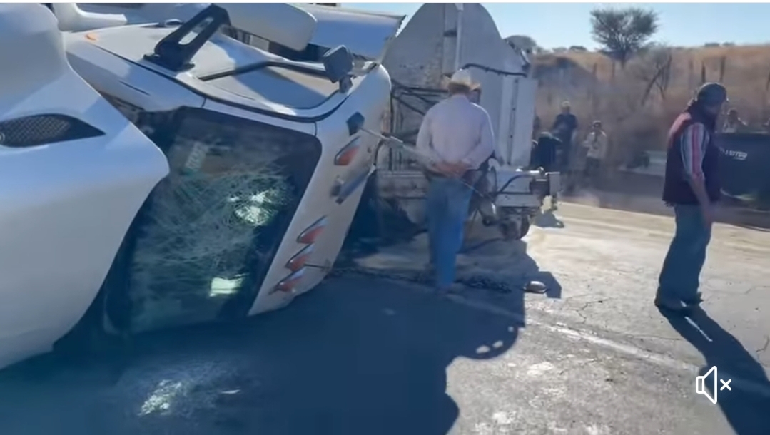 Esta mañana, un tractocamión blanco que cargaba salvado de trigo, volcó sobre la carretera a Santa Bárbara, a la altura de El Granillo.