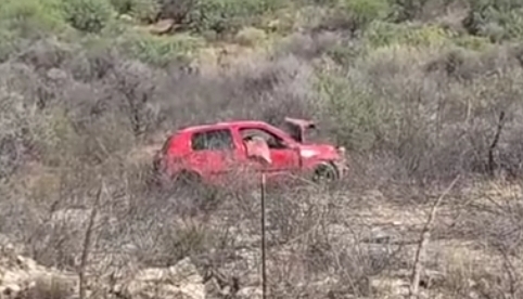 Al terminar de dar volteretas, el vehículo quedó a unos 50 metros de la cinta asfáltica quedando en su posición original, pero completamente destrozado.