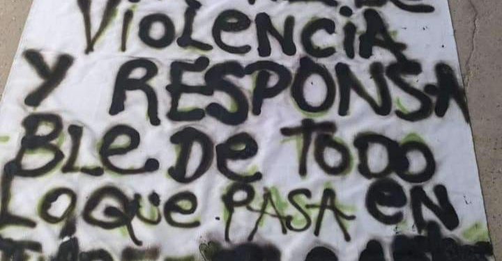 También lo responsabilizan de asesinatos de niños y mujeres, por lo. que elementos de las distintas corporaciones policiacas retiraron las telas pintadas con aerosol y otros materiales.