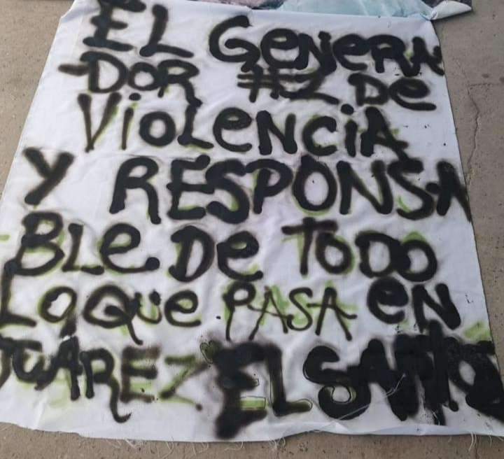 Han cuolgado, al menos, ocho narcomantas en calles de Ciudad Juárez acusando a «El Santos» por homicidios cometidos en aquella frontera.